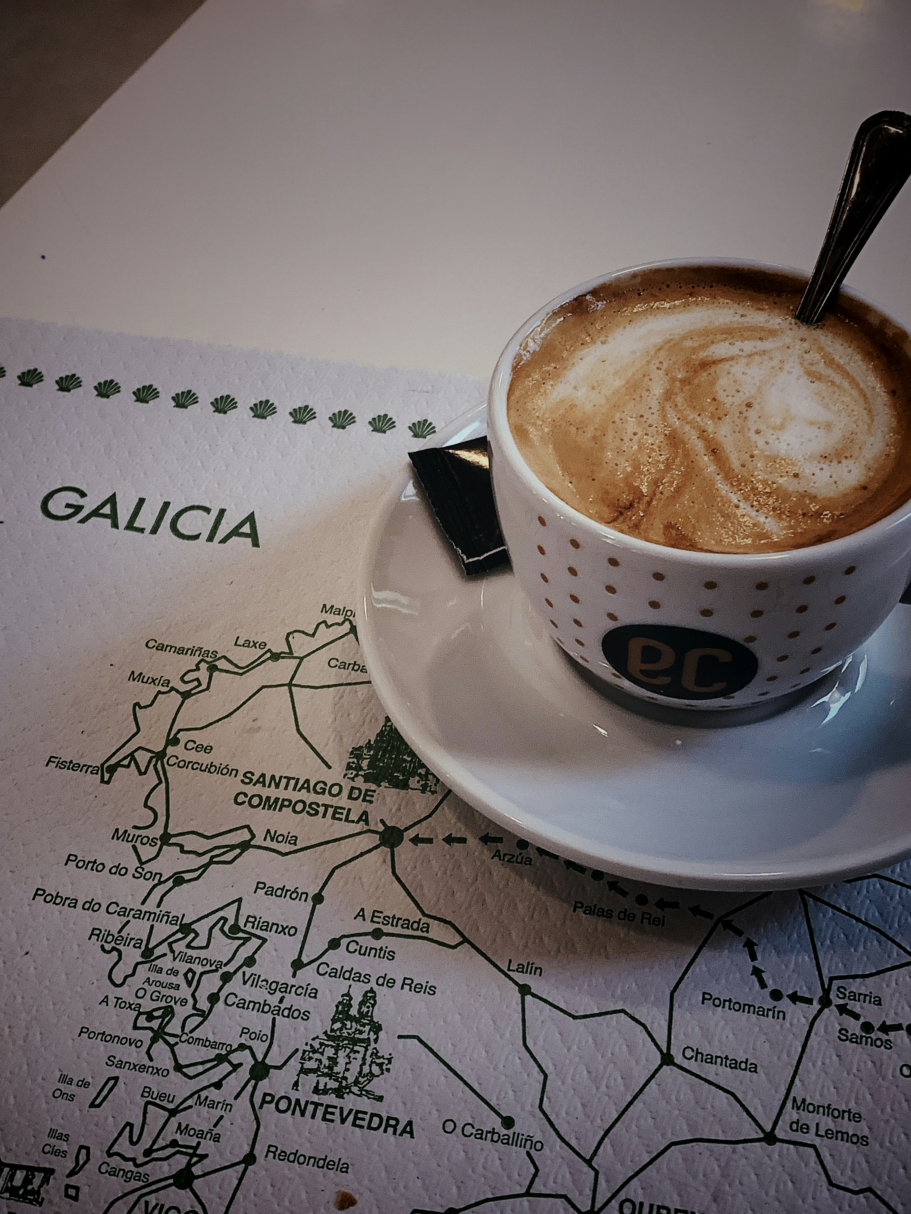 Im Café entdeckte ich eine weitere Bekanntschaft, die zuerst nach Muxía gelaufen war und dann zum Kap Finisterre laufen wollte. Ich hatte die andere Variante ausgewählt: zuerst Fisterra und Muxía zum Schluss. Wir plauderten kurz sehr angeregt über unsere jeweils hinterlegten Strecken, jedoch hatte ich bei ihm auch nicht das Gefühl, dass es passte, wenn wir gleich zusammensäßen. Ich ging also lieber zu einem freien Tisch.