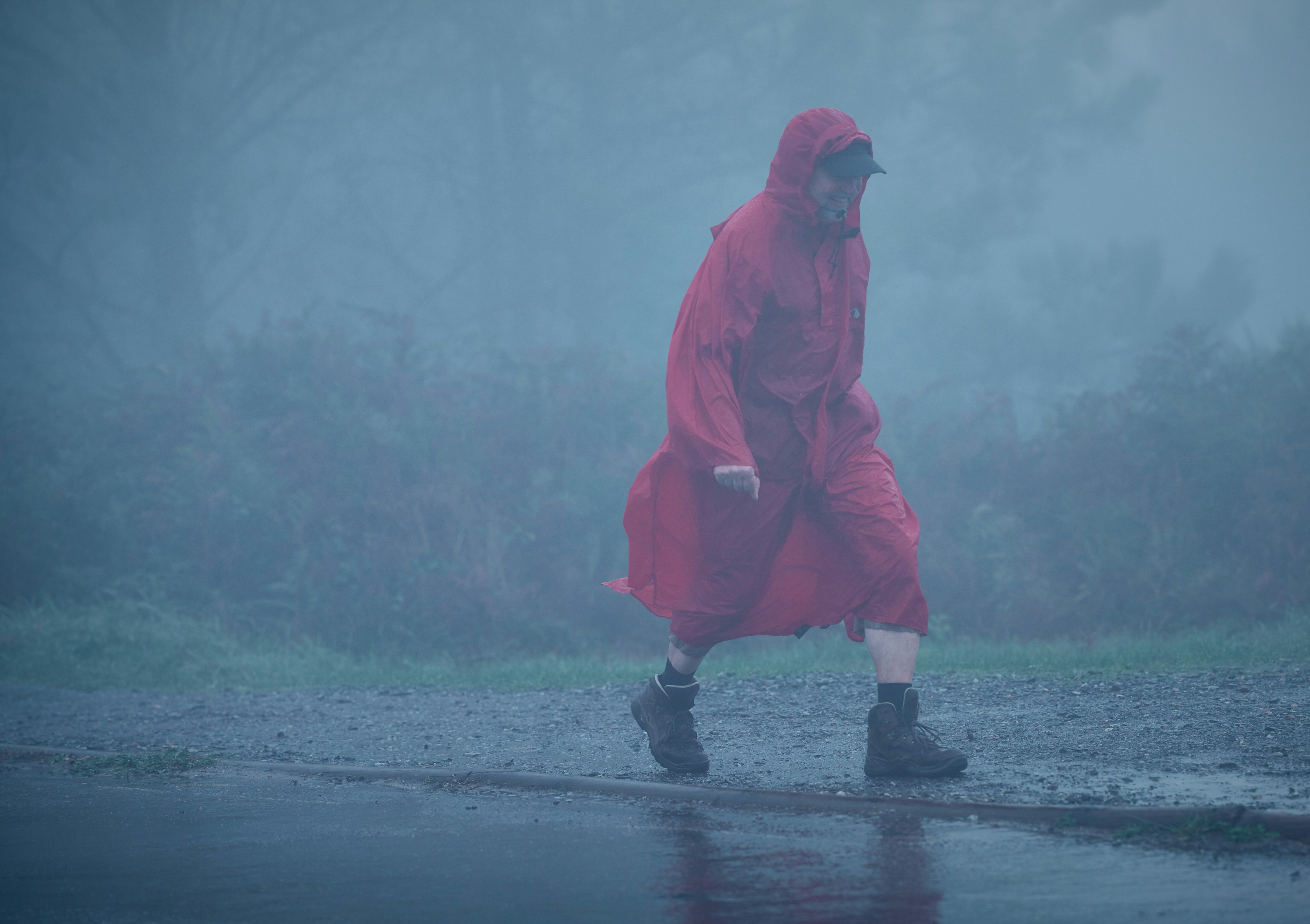 Es wurde sogar so stürmisch, dass ich beinahe gegen einen Radpilger lief, der mir entgegenkam und sein Rad bergauf schob, da ich die Kaputze meines Regenponchos tief ins Gesicht gezogen hatte und so nur meine eigenen Füße sehen konnte. Auch das war lustig.